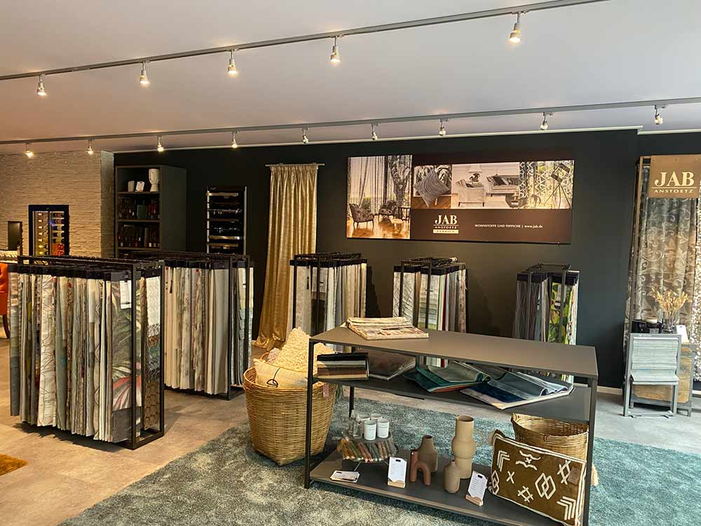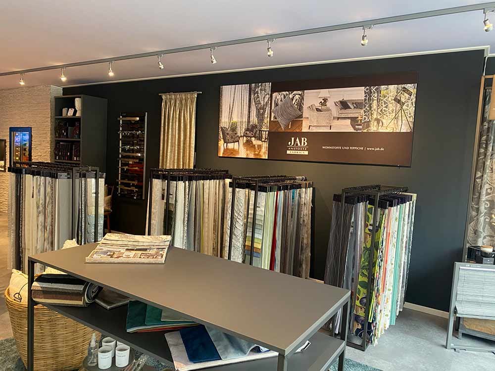 Vielfältige Gewebe und eine große Bandbreite. Von Bodenbelägen über die Wandgestaltung bis hin zu Sonnenschutz und Polsterarbeiten sind Ihrer Vorstellung keine Grenzen gesetzt. Dabei verarbeiten wir ausgewählte Materialien namhafter europäischer Hersteller.